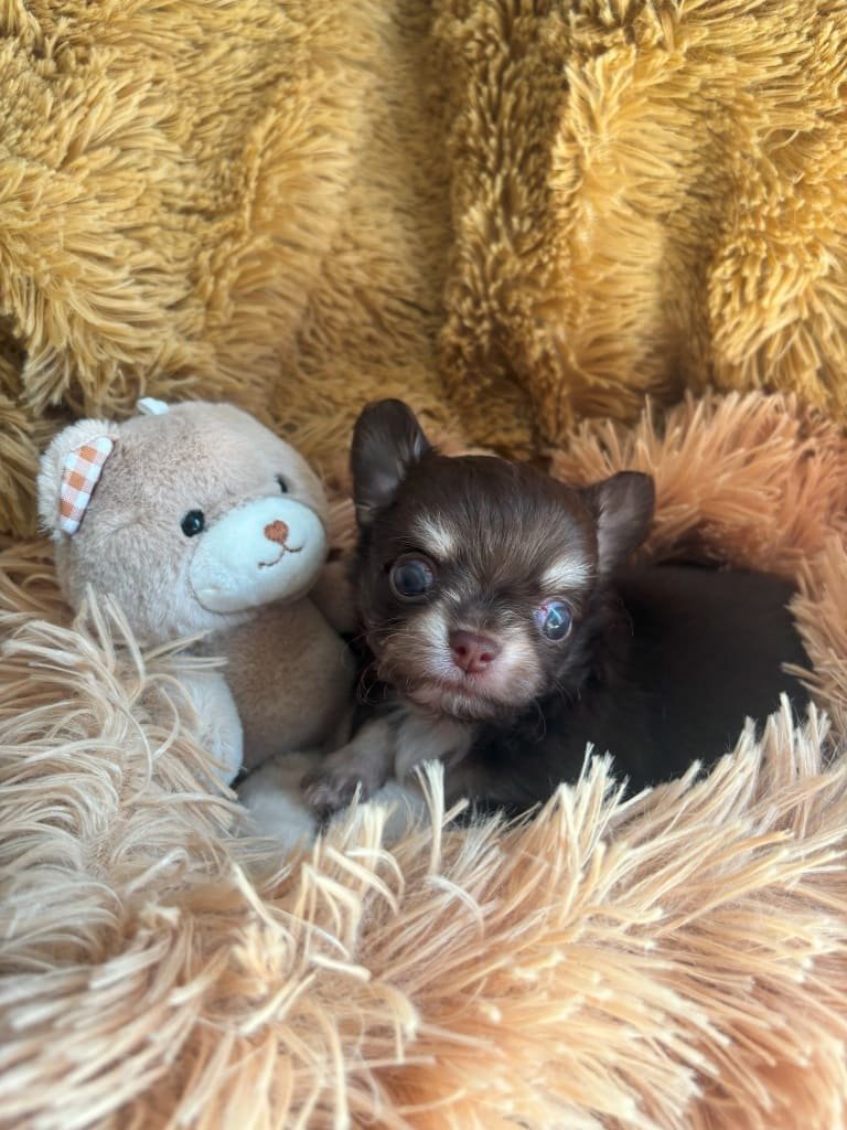 Considerado o menor cão do mundo, o Chihuahua é um cachorro de porte pequeno ou mini, com coragem e ousadia de um cachorro gigante. Pesam entre 1,5 a 3kg, e podem viver ate 20 anos.